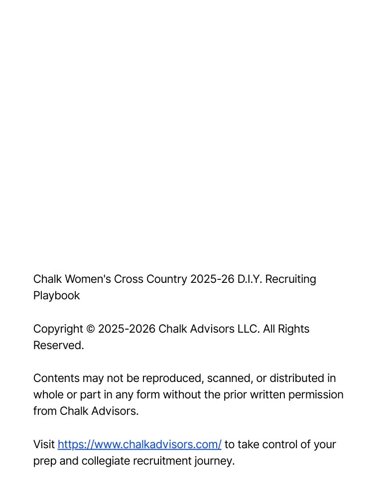 A comprehensive 181 page D.I.Y. Recruiting Playbook built specifically for women’s cross country